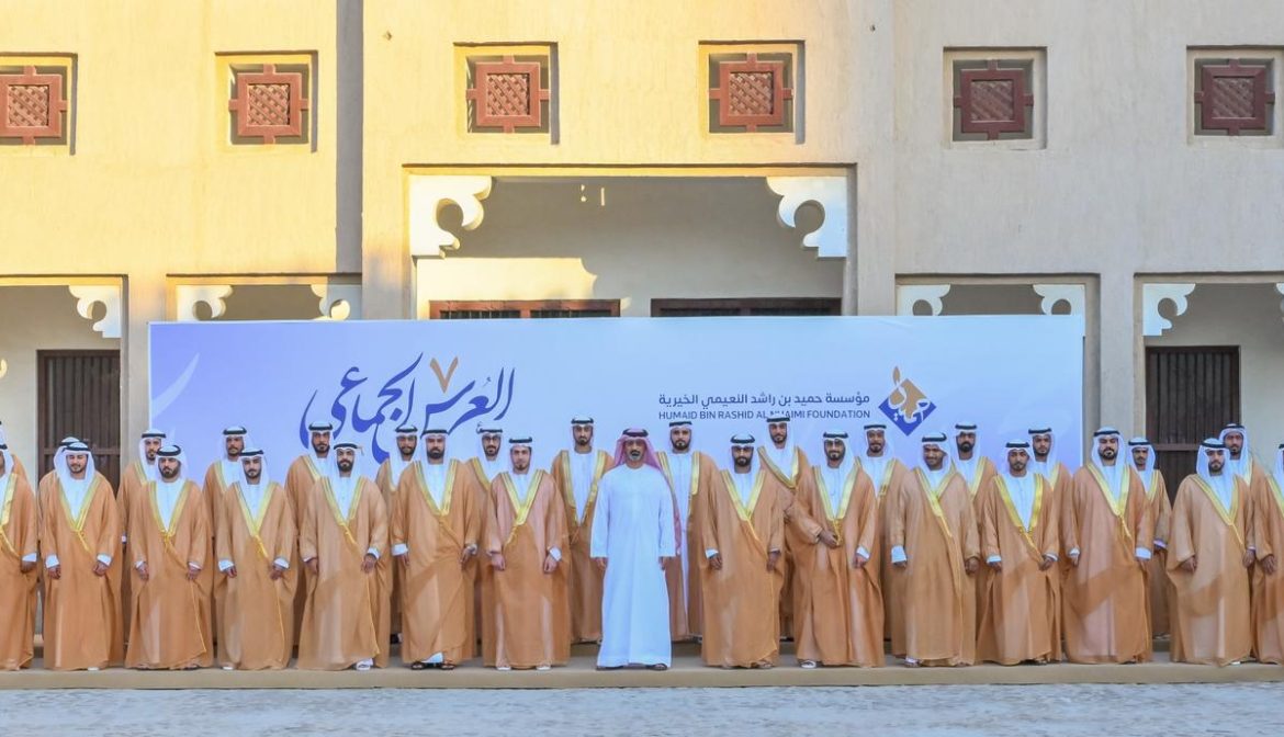 تحت رعاية صاحب السمو الشيـخ حميد بن راشد النعيمي، عضو المجلس الأعلى، حاكم عجمان، حضر سمو الشيخ عمار بن حميد النعيمي، ولي عهد عجمان، رئيس المجلس التنفيذي رئيس مجلس أمناء مؤسسة حميد بن راشد النعيمي الخيرية، العرس الجماعي السابع الذي نظمته المؤسسة، مساء اليوم في متحف عجمان لـ 55 عريساً من أبناء الإمارة.